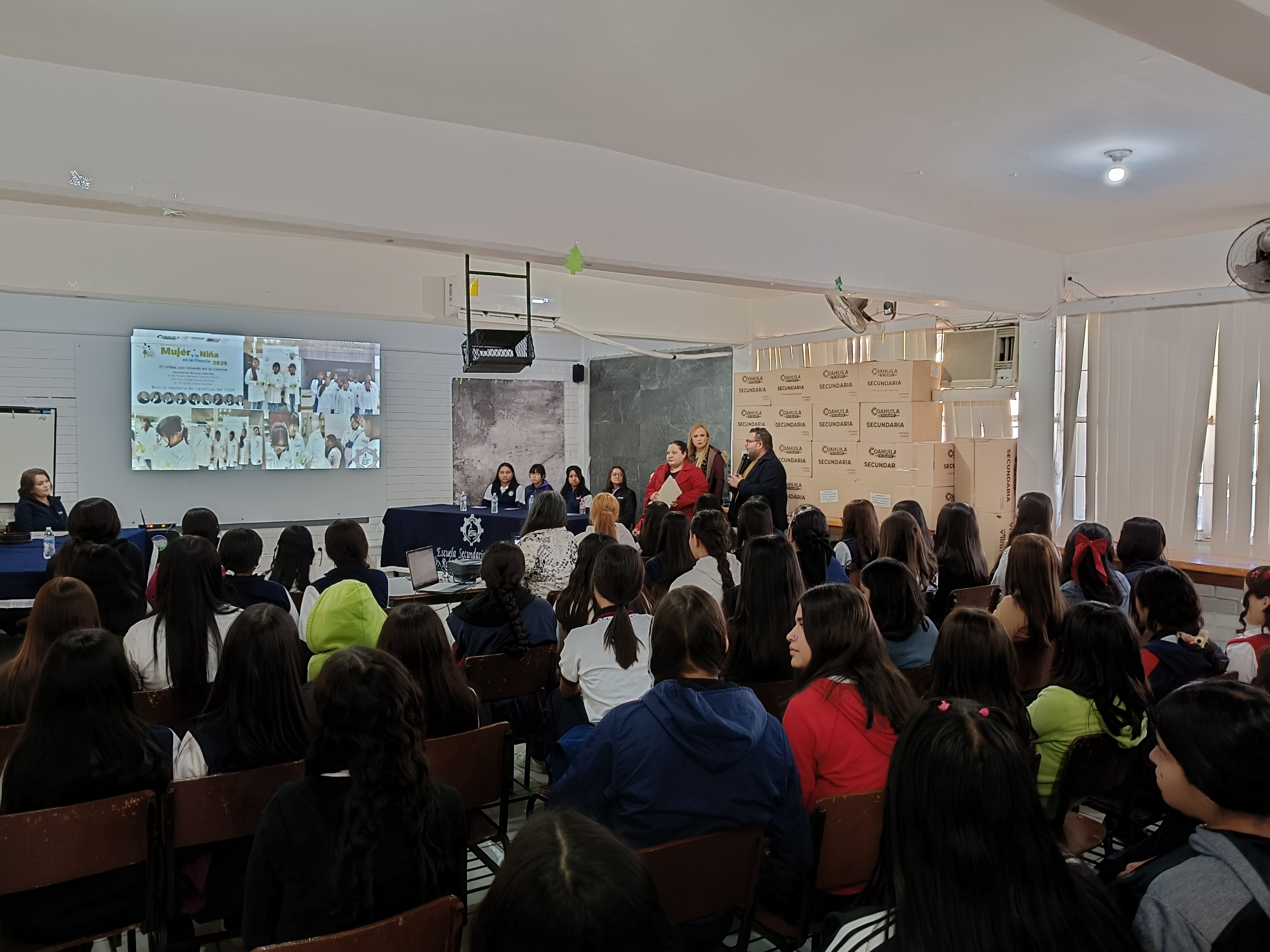 De igual manera, en la Secundaria Técnica #80 “Rubén Humberto Moreira Flores”, las doctoras Abril Fonseca García, Silvia Guadalupe Solís Rosales y Griselda Castruita de León; la química Myriam Lozano Estrada; y las estudiantes de posgrado Daniela Nataly Díaz Zepeda e Isela Elizabeth Sandoval Herrera compartieron sus experiencias con la comunidad estudiantil. Esta actividad fue organizada excepcionalmente por la propia secundaria para presentar los trabajos realizados por nueve alumnas que participaron en la estancia “Científica por un día”.